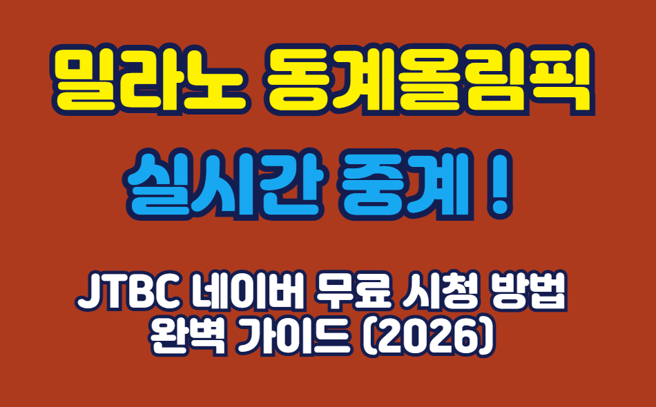 2026 밀라노 동계올림픽 실시간 중계를 무료로 보는 방법을 정리했습니다. JTBC 단독 중계 채널, 네이버 스포츠 무료 생중계, 모바일 시청법까지 한 번에 확인하세요.