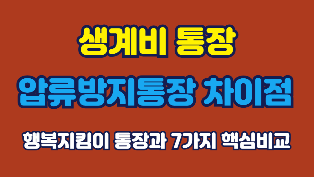 생계비통장과 압류방지통장(행복지킴이통장)의 차이점을 7가지 기준으로 비교 정리했습니다. 보호 한도, 가입 대상, 입금 방식 등 핵심만 빠르게 확인하세요.