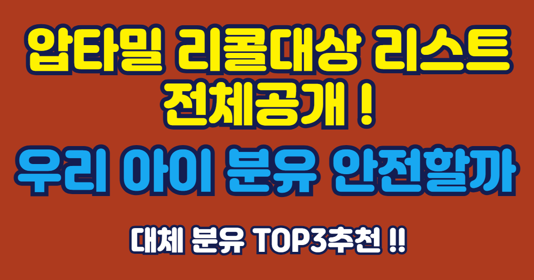 압타밀 리콜대상 전체 리스트와 식약처 검사 결과를 정리했습니다. 리콜 분유 대신 먹일 수 있는 안전한 대체 분유 TOP 3도 함께 추천합니다.