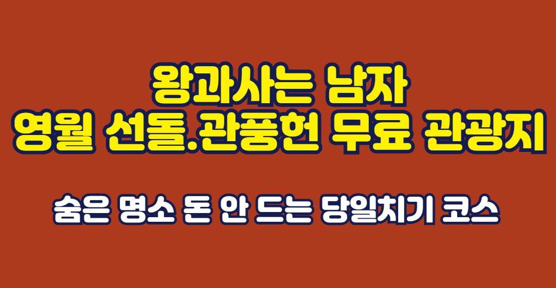 영화 촬영지인 청령포(3,000원)와 장릉(2,000원)은 유료이지만, 영월에는 입장료가 완전 무료인 숨은 명소가 여럿 있다. 예산이 부담되거나 청령포 배 대기가 너무 긴 날, 이 코스를 대안으로 활용하면 만족도 높은 여행이 가능하다.