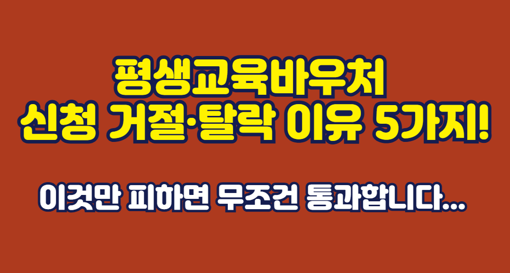 평생교육이용권 신청 후 탈락하는 이유 5가지를 정리했습니다. 소득 기준 착각, 중복 신청 실수 등 흔한 실수 예방법 총정리.