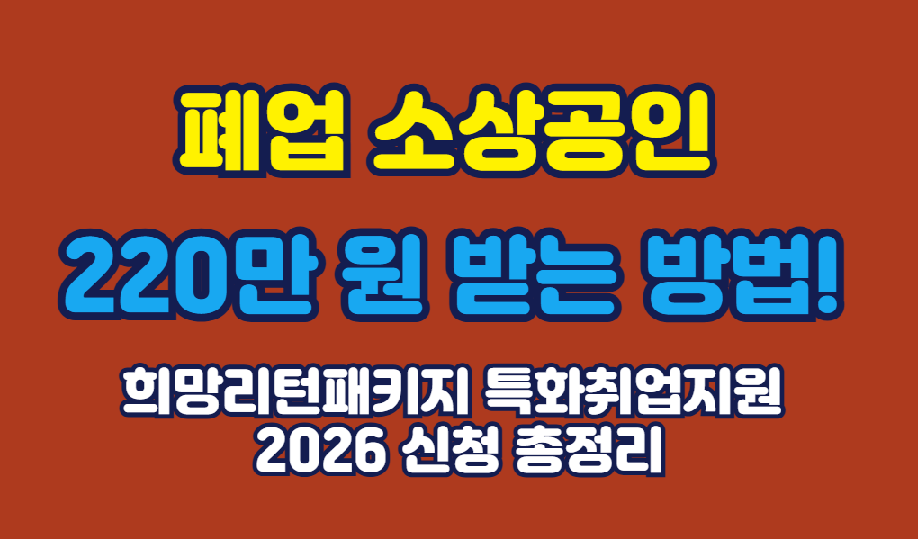 2026 희망리턴패키지 특화취업지원으로 폐업 소상공인이 최대 220만 원 받을 수 있습니다. 전직장려수당 100만 원+국민취업지원제도 120만 원 신청자격과 절차를 상세히 안내합니다.